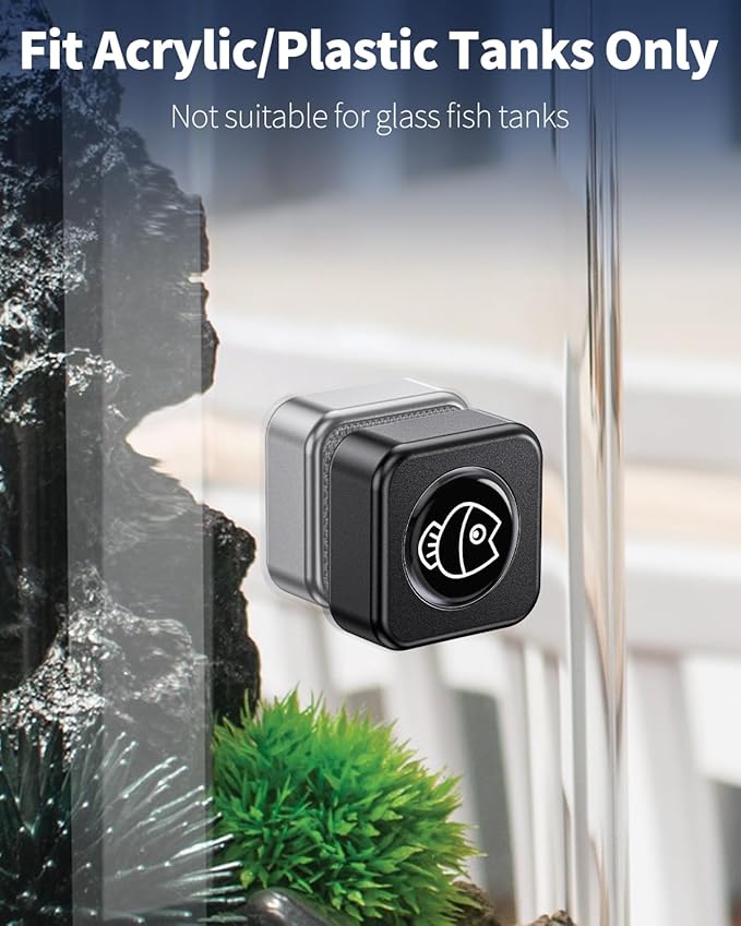 - For Acrylic/Plastic Tanks Only: 1.17" L x 1.17" W x 1.1" H. Perfect size for fish tanks up to 10 gallons. Work great to clean fish tanks with thickness less than 1/5 inches. Not Fit for Glass Tanks!