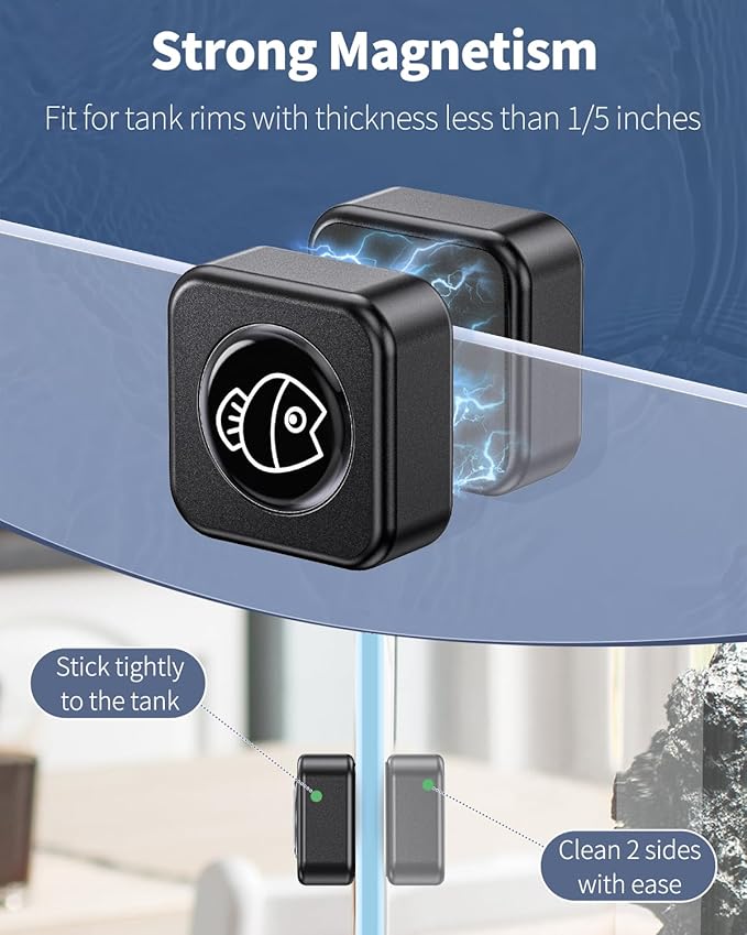 - Double-Sided Magnet Brush: Both cleaning pads are intended for wiping dust or slight marks inside and outside the tank. Thoroughly clean the surface to keep it crystal clear.