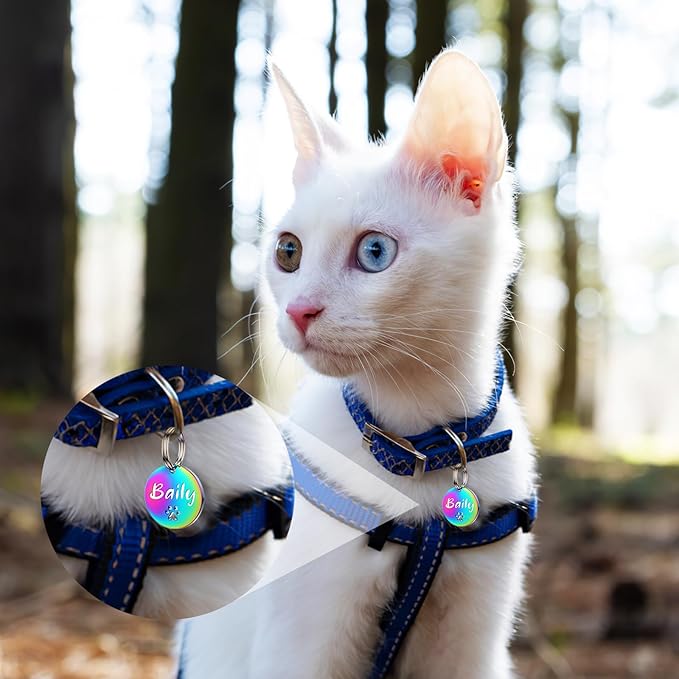- Excellent Pet Tags Personalized: Our customized dog tags for pets are made of high-strength stainless steel, which is durable and resistant to rust with a polished surface. The laser engraving ensures clear and legible text that is long-lasting and scratch-resistant. The weight and thickness are perfectly balanced, providing comfort for your furry friend without weighing them down.