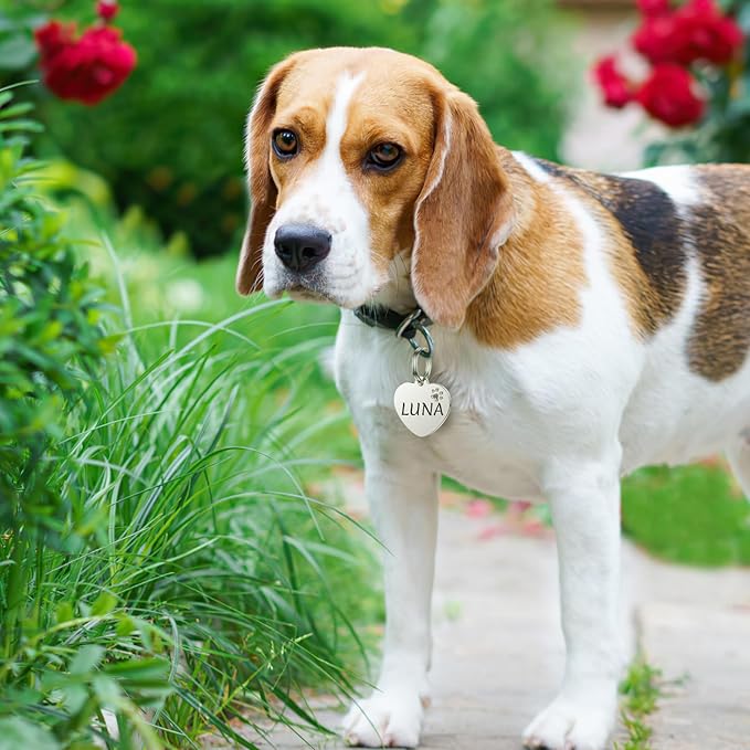 Dog Tags Personalized for Pets - YEHANTI Personalized Dog Tags with Dog Paw, Durable Stainless Steel Pet ID Tags for Small Large Dogs Cats, Custom Dog Name Tags Engraved on Both Sides (Heart)