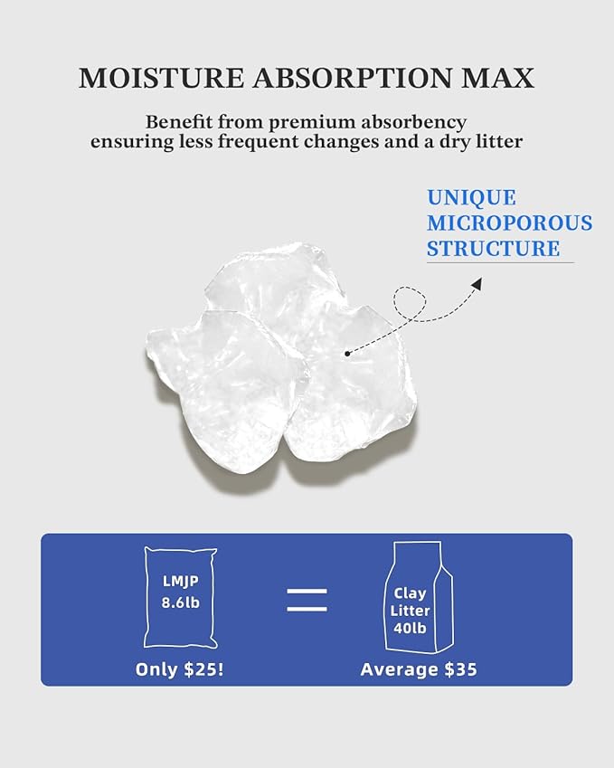 - LASTING CONVENIENCE: Experience hassle-free maintenance and cost savings with an 8.6lb bag of crystal litter. Its exceptional durability allows it to last up to 2 months, reducing the frequency of litter replacement. Enjoy effortless upkeep and long-lasting benefits with cat litter white crystals