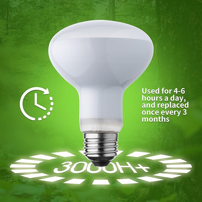 - [Soft lighting] The frosted glass cover of reptile heat bulb diffuses light evenly and protects reptile eyes from glare.