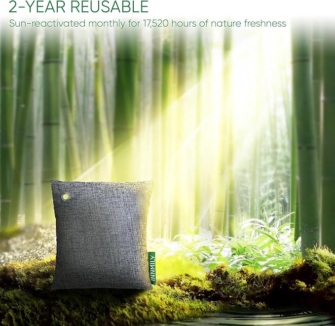 - ENJOY 2 YEARS OF FRESHNESS - Benefit from 17,520 hours of natural odor absorber! Simply recharge the bags monthly with sunlight, making them a budget-friendly and eco-conscious choice. Suitable for bedrooms, drawers, and any space needing deodorization. For maximum impact, use multiple bags to eliminate smoke and other stubborn smells effectively. Great pet odor eliminator for home and room deodorizer odor eliminator.