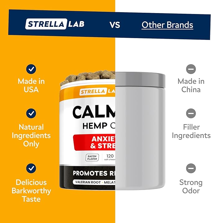 - One Chew to Calm Them All: Ease your dog's nervousness with our calming chews for dogs anxiety, crafted with hemp & melatonin for natural relaxation during fireworks, thunder, and separation.