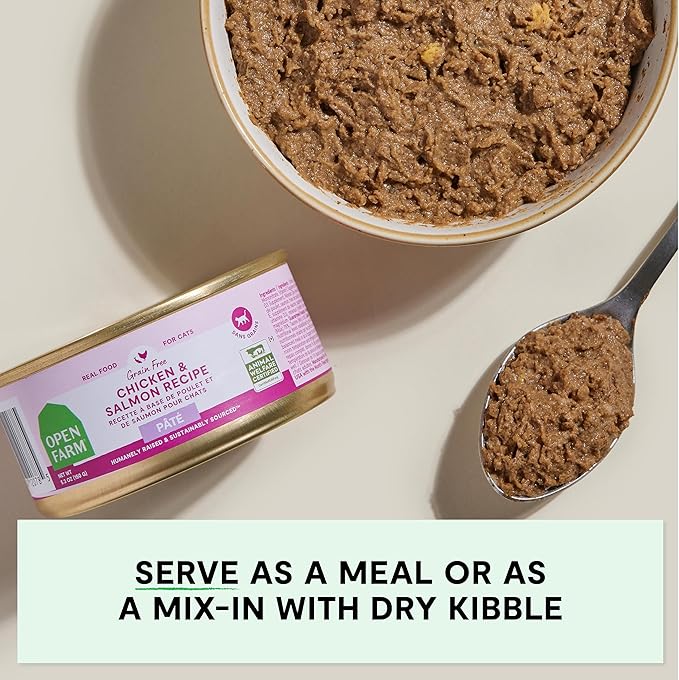 Open Farm Canned Cat Food, Paté for Complete & Balanced Nutrition, Grain-Free and Legume-Free Wet Cat Food, Chicken & Salmon Recipe, 5.3oz Cans (Case of 12)