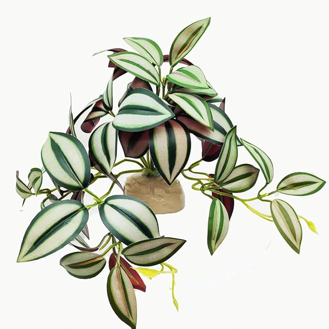 Reptile Plants for Terrarium Decor,Amphibian Habitat Decor, Bearded Dragon Tank Accessories,Artificial Plants for Gecko Chameleon Snake Tortoise with Base (Zebrina)