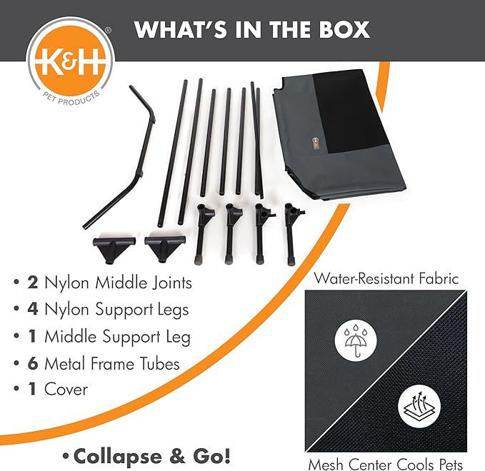 - COLLAPSIBLE: Collapsible dog cot is easy to assemble and disassemble, no tools necessary making this portable bed great for use during travel, camping, picnicking, place board training and more