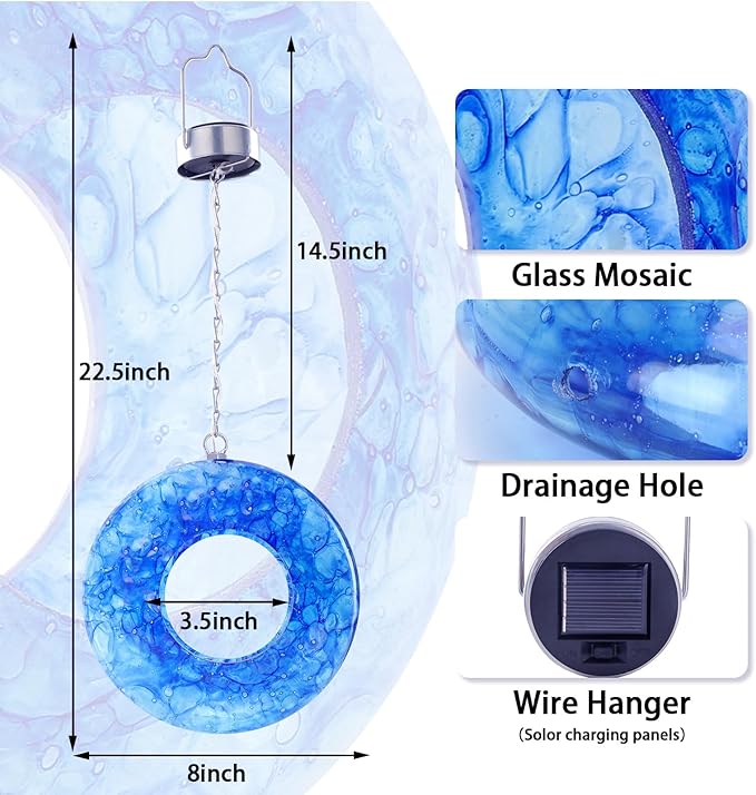 Yinns Mosaic Bird Feeders for Outside Hanging Fly Through Bird Feeder with Round Shape Solar Birdfeeder for Yard Garden Decor Bird Lvoers Gifts, 8-Inch Bule