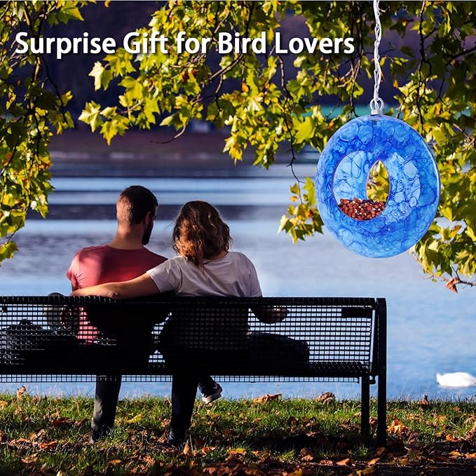 - Hanging Bird Feeder:Mosaic hang bird feeders for outdoors is made of strong mortar and glass. Birds can eat from the rim or hop inside during bad weather