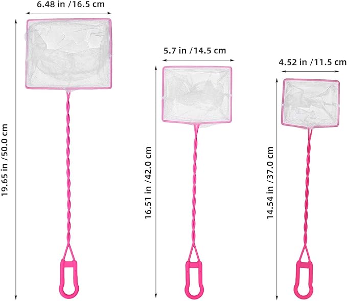 - Durable Plastic Handle: Each net features a sturdy plastic handle that provides a comfortable grip and ensures ease of use while catching fish or skimming debris