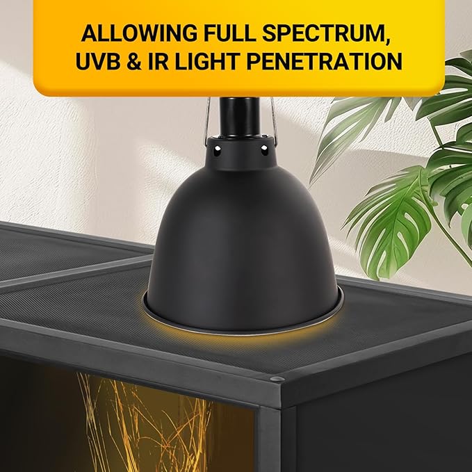 - 【Optimal Ventilation】: The removable mesh screen on the top provides ample airflow while allowing full-spectrum, UVB, and IR light to penetrate, creating a comfortable living environment for your reptile.