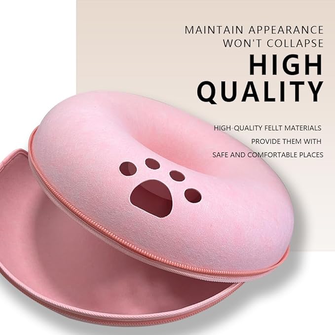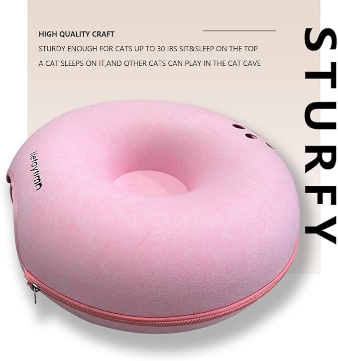 Tunnel nest, Donut nest, Fun Ventilation peep Hole, Detachable Zipper cat Bed, Felt Washable, All Season Universal cat Bed Suitable for Cats (Pink, Small)