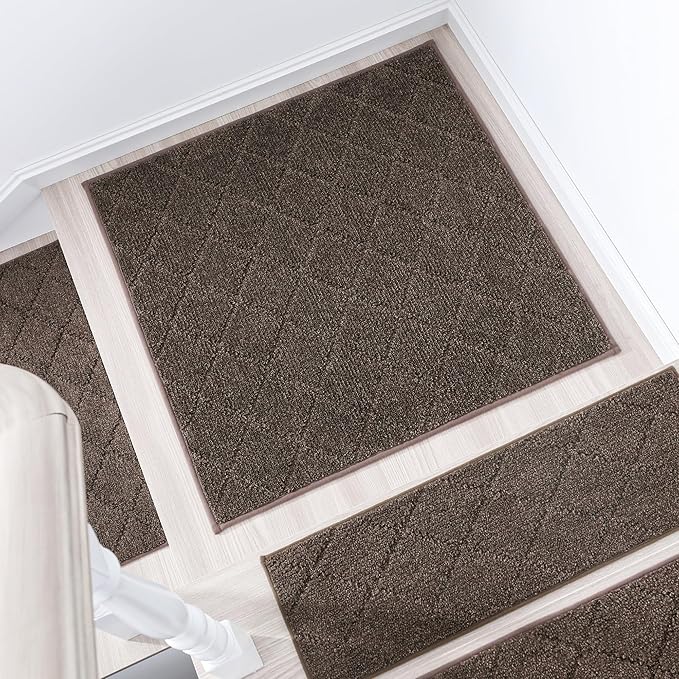 COSY HOMEER Edging Stair Treads Non-Slip Corner Indoor Stair Runners for Wooden Steps,Landing Slip Resistant Stair Rugs Mat for Kids and Dogs,100% Polyester TPE Backing,Brown,30x30 inch
