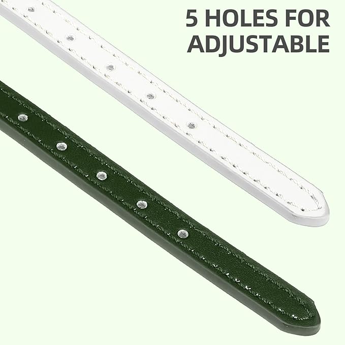 PUPTECK 2 PCS Soft Genuine Leather Cat Kitten Collar with Bells Adjustable for Girl Boy Cats Puppy - White, Deep Green