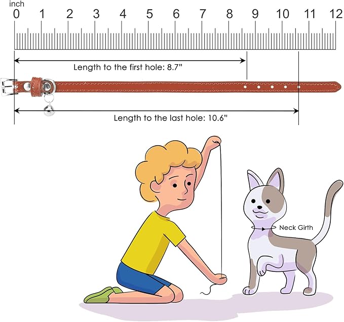 - The size of this collar is designed to fit cats and some small dog breeds, adjusted from 8.7"- 10.6". You need measure your cat's neck girth before purchase to ensure it is suitable