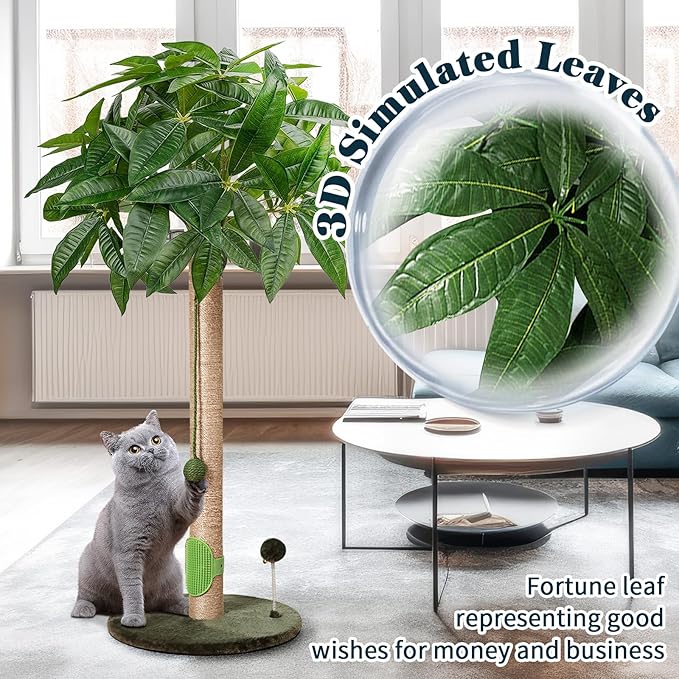 - Decorate & Protect Your House: The money tree leaves can add a splash of green to a variety of different styles of homes, and the faux trunk style cat scratching post keeps your furniture free from cat claw marks