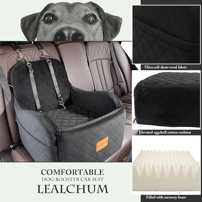 - Comfort: The Lealchum dog booster car seat features an ultra-soft surface material and is cushioned with soft memory foam,The 15 cm high eggshell sponge pad at the bottom enables pets to enjoy the outside scenery comfortably