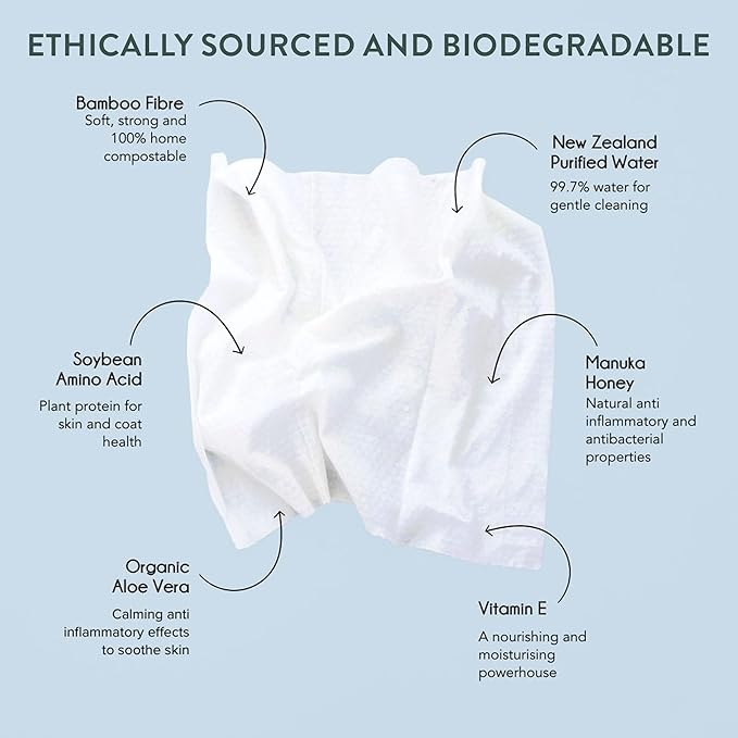- ๐๐ข๐ ๐ก ๐๐ฎ๐๐ฅ๐ข๐ญ๐ฒ, ๐๐ฅ๐๐ง๐ญ-๐๐๐ฌ๐๐ ๐๐ข๐ฉ๐๐ฌ - Made in New Zealand, our pet wipes are made from 100% sustainably sourced bamboo plant fiber. They are biodegradable and home compostable, making them not only a safe choice for our pets but also a great choice for our planet.