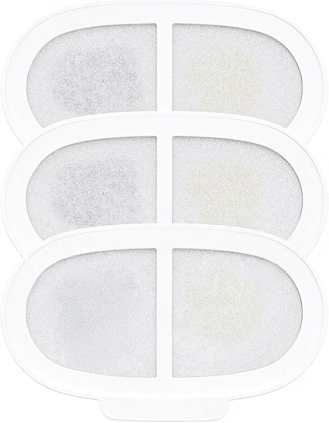 - ๐๐๐๐จ๐ฆ๐ฆ๐๐ง๐๐๐ญ๐ข๐จ๐ง๐ฌ: Before use, please soak and wash the filter cartridge in the water for 5-10 minures. Package includes: 3 x filters for pet water fountain