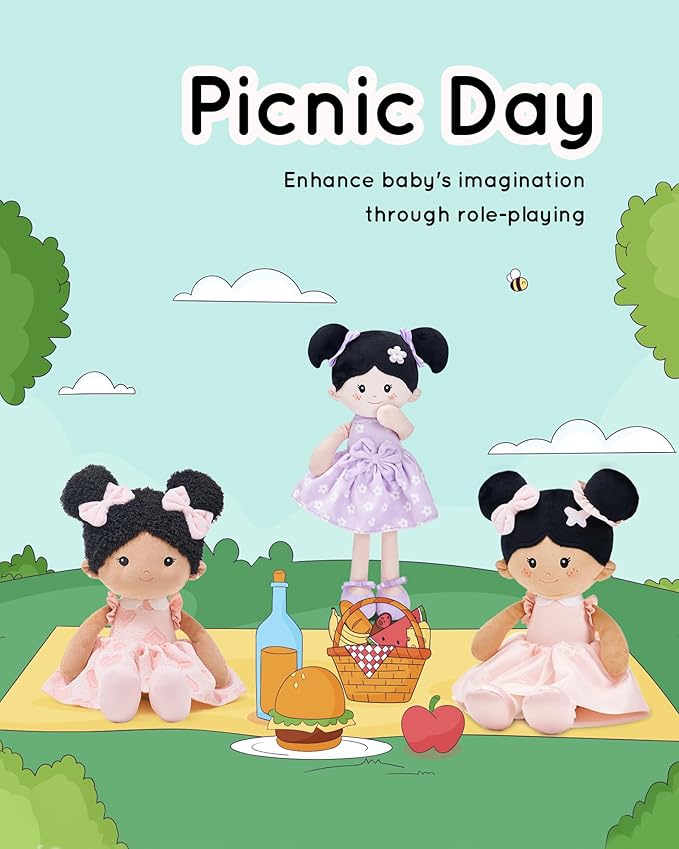 Soft Baby Doll Toys (16''), My First Baby Rag Doll for 1 Year-Old Girl Birthday Gift, Christmas Plush Toys Gift for Toddler Kids Infants-Sweetheart(Double Buns Tanned)