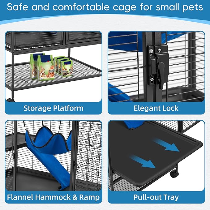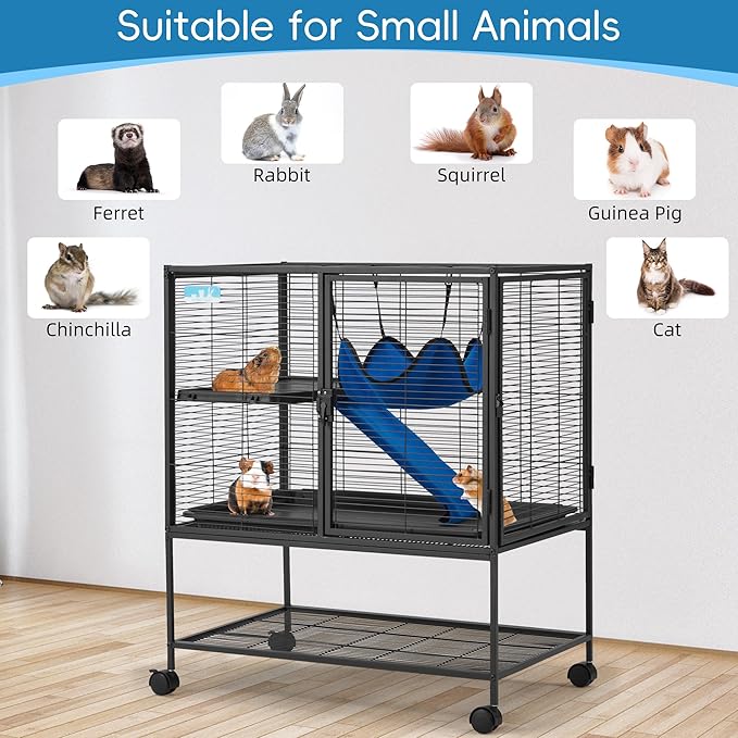 - 【2025 Upgrade Small Animal Cage】The upgrade metal ferret cage boasts high strength and rust-resistance. The metal bar adopts the design of solder joints, which is more difficult to break. The door lock is special designed for small animals to keep ferrets, chinchillas save in cage. Even the smart little guy like squirrels can't open it.