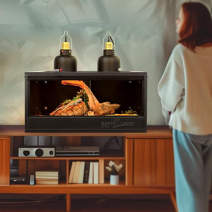 - Suitable for Bulbs up to 100W: This reptile light fixture design with E26 bulb base, each lamp holder has a diameter of 5.5 inches and can install a maximum 100W bulb, come with 2pcs lamp fixture, which offers a practical and effective solution for providing both heat and UVB light for your beloved reptile pets.