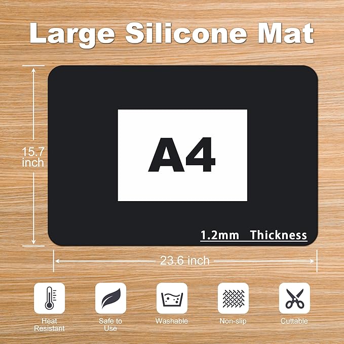 - Tailored Sizing: These silicone mats come in various dimensions to fit diverse requirements. Ranging from a compact 15.7"×11.8"×0.04", ideal for kids, to a larger 23.6"x 15.7"x 0.05" version, perfect for extensive coverage on kitchen countertops, they offer versatility in size. Moreover, the silicone mats can be easily trimmed or cut to your desired shape, ensuring customized fit and maximum usability