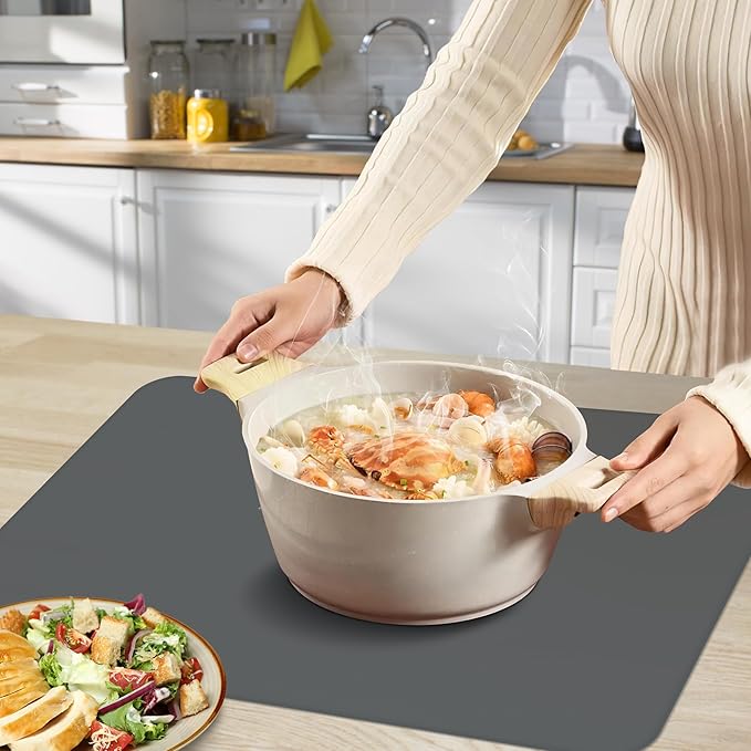 Silicone Mat for Kitchen Counter, Silicone Mat Trimable to Size (Dark Gray, 15.7×11.8inch-2pcs), BPA-Free Silicone Placemat, Heat-Resistant NonSlip Table Mat for Air Fryer, Countertop Protector Mat