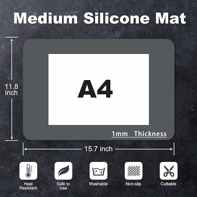 - Tailored Sizing: These silicone mats come in various dimensions to fit diverse requirements. Ranging from a compact 15.7"×11.8"×0.04", ideal for kids, to a larger 23.6"x 15.7"x 0.05" version, perfect for extensive coverage on kitchen countertops, they offer versatility in size. Moreover, the silicone mats can be easily trimmed or cut to your desired shape, ensuring customized fit and maximum usability