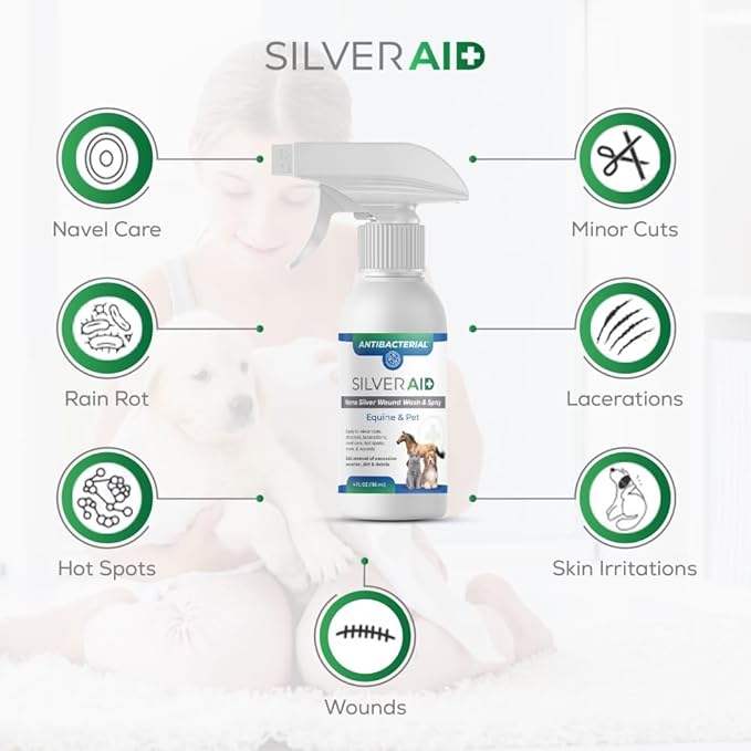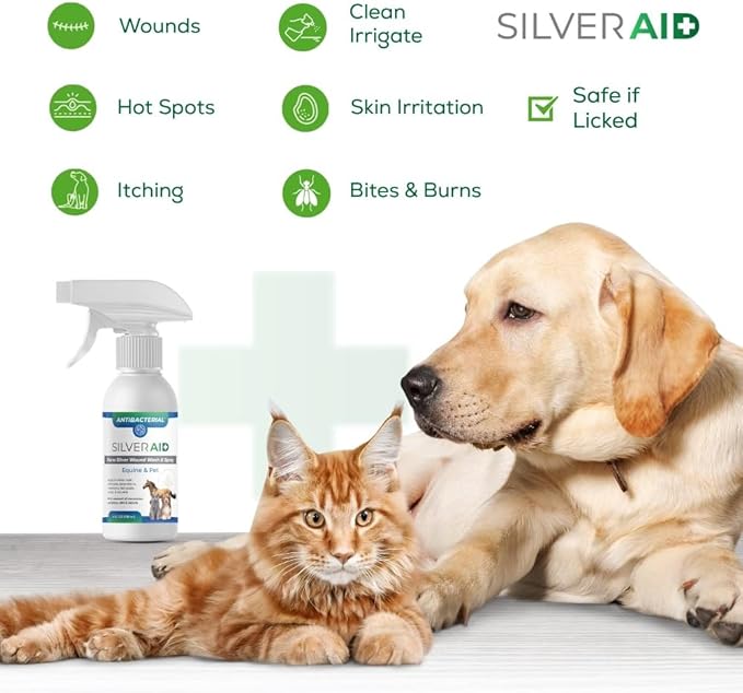 - SUITABLE FOR ALL ANIMALS – SilverAid is third-party tested and crafted for use on all skin types, including fur, feathers, and scales. Ideal for routine care of dogs, cats, horses, and other animals, large or small.