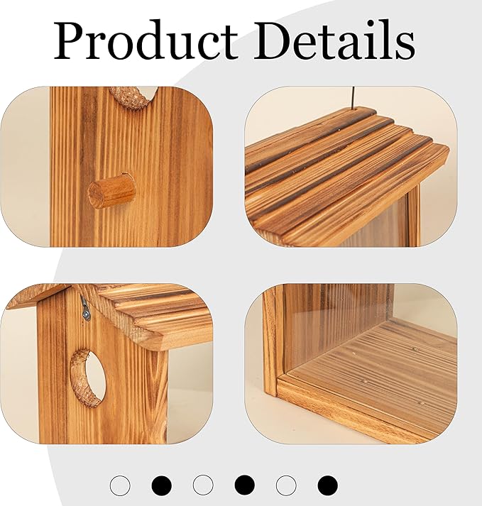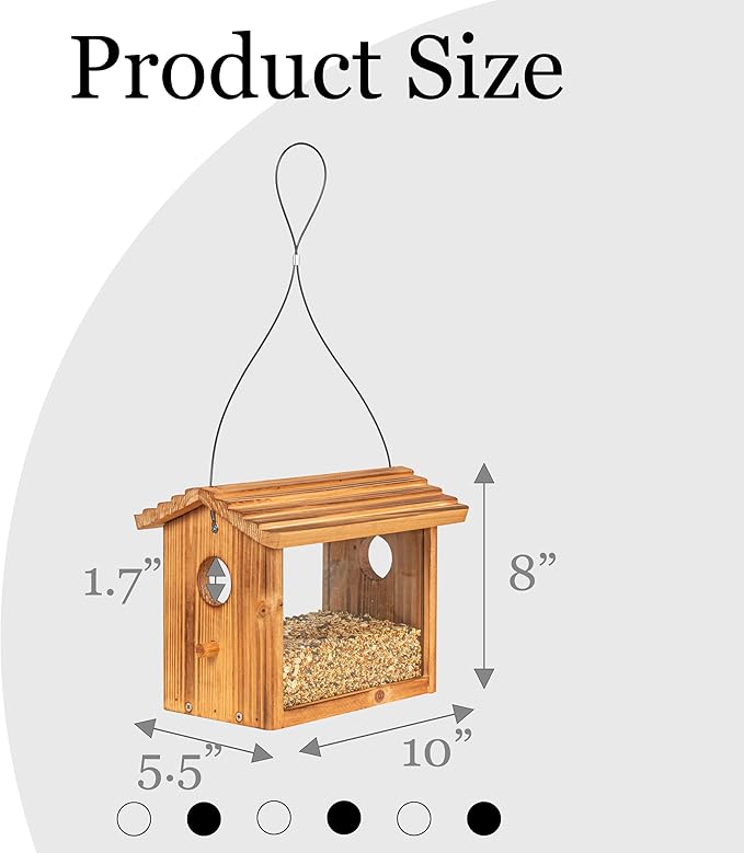- Size: The overall size is 8x5.5x10, which can accommodate most bird feeds, bluebirds, tits and other backyard birds.