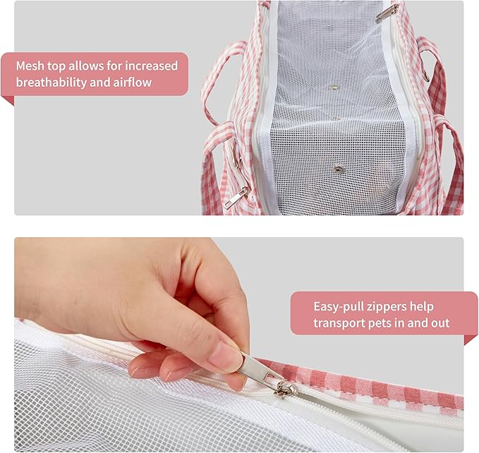 - Plaid Elegance: Featuring a trendy puppy purse style, this pet carrier for dogs is functional and fashionable. Our puppy purse for small dogs 0-15 lbs boasts a timeless pink gingham design, making you and your pet the most stylish duo in town.