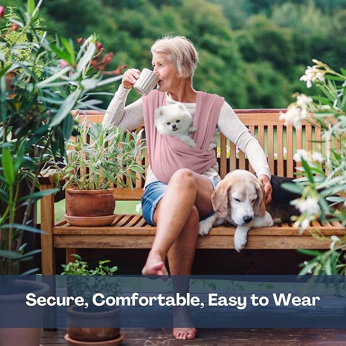 - [SIMPLE SIZE & PERFECT FIT] Please measure your fullest part of your bust and choose your size on the size chart. There are two simple sizes, Regular (S~L) and Plus (XL~3XL). Regardless of your size, our dog carrying sling is designed as small dog carrier up to 20lbs(9kg). The 95% Cotton is extra soft, and the 5% Spandex gives the elasticity which allows our dog sling carrier for small dogs to conform to your pet's shape, ensuring maximum comfort for both you and your pet during use