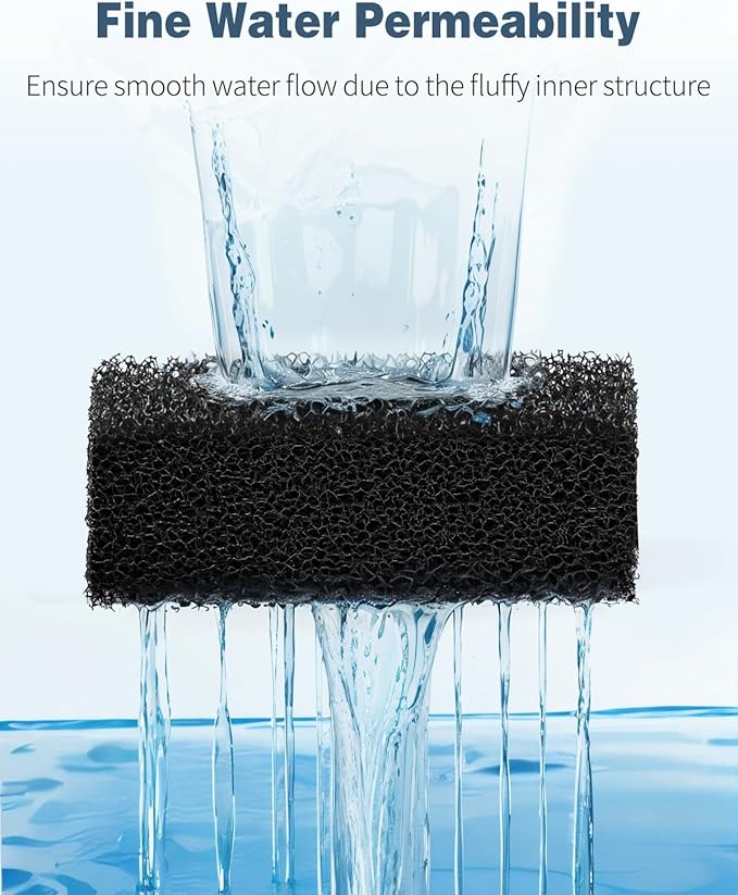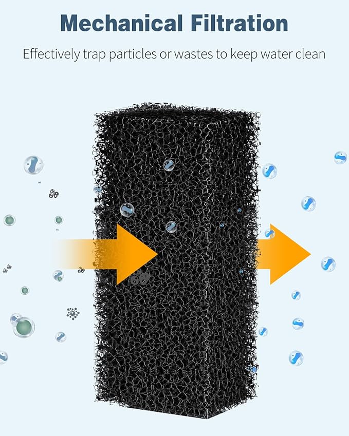 - Fine Sponge Filtration: With large contact area with water, the black filter media sponges are helpful for the accumulation of beneficial elements. Provide biological filtration to fully remove excess harmful substances.