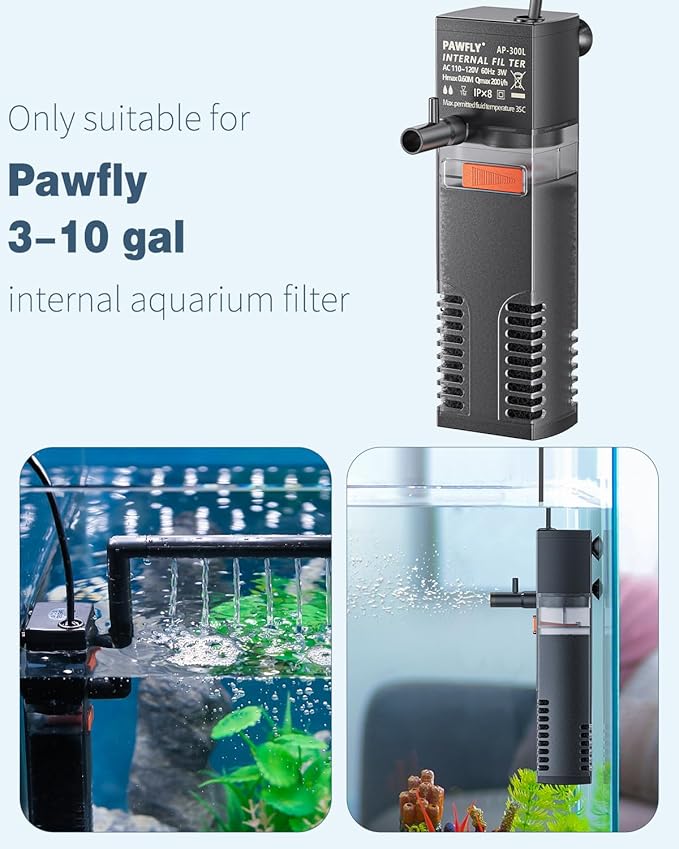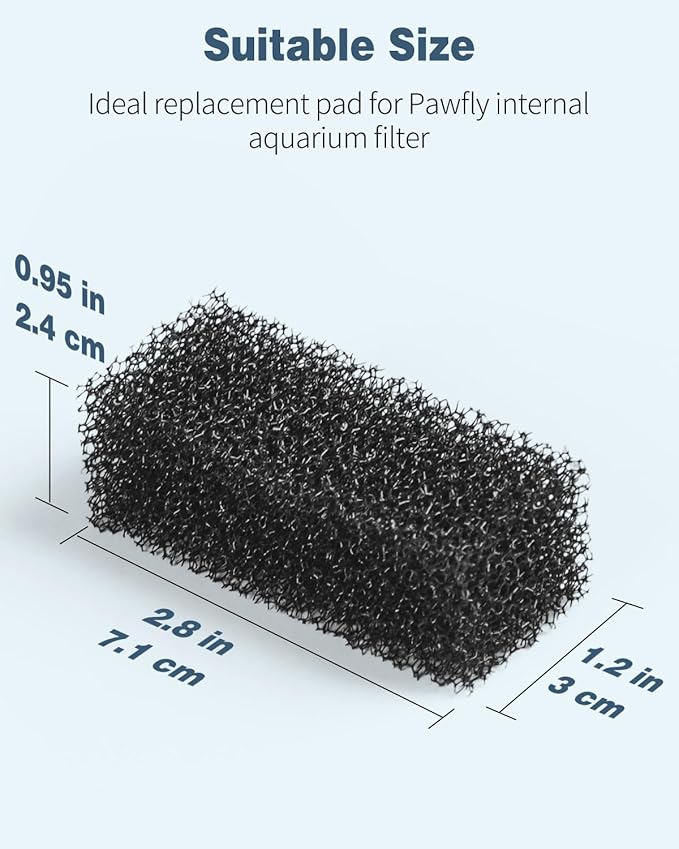 - Ideal Replacement Filter Pads: Size: 2.8" L x 1.2" W x 0.95" H. The black filter pads are perfectly compatible with Pawfly 3-10 Gallon Internal Aquarium Filter. Perfect replacement for the worn filter sponges.