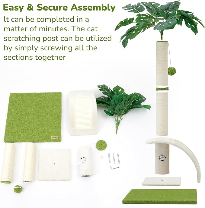 - Easy to Assemble:Has no tedious assembly steps and too many parts. Just follow the instructions strictly to assemble, you'll have a Woochpet cat scratching post set up in just 20 minutes.