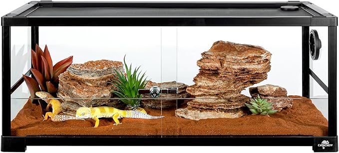 - Double Sliding Door and Cable Pass: CAVACHEW Reptile terrarium design with double sliding door, equipped with upgraded door locks, easy to feeding your reptiles and prevent them escape, also can save space and no worries about the child opening the tank, cable pass used rotating fixed structure which can holds lines firmly.