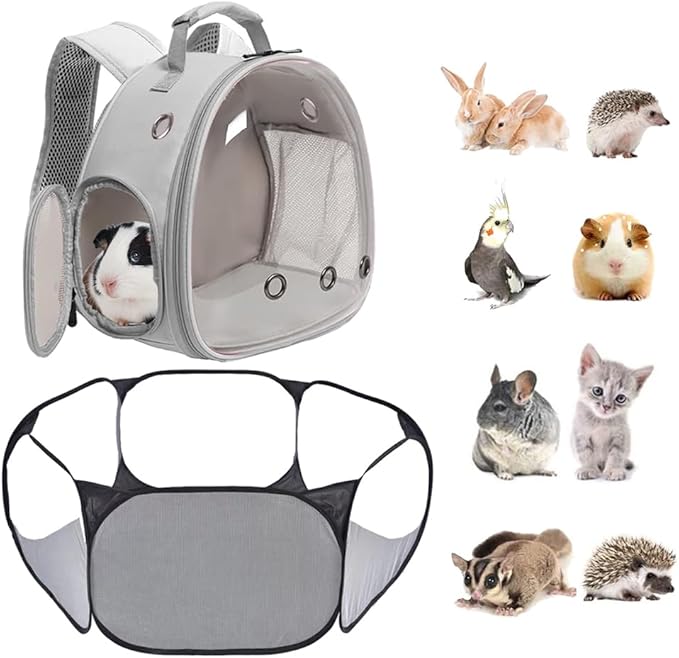 - ❤【Great 2-Pack for small animals】The set includes 1 backpack grey and 1 playpen for small animals. The playpen is easy to store in your bag when outdoor as it’s collapsible. Make it an easy thing, carry your pets out and let them play in the pen.