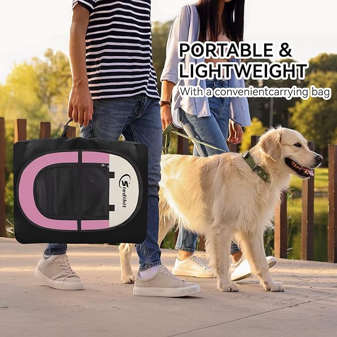 Pink Puppy Playpen for Large Dog Cat, Dog Tent Crates Cage Indoor/Outdoor, Portable Pop Up Dog Kennel with Carrying Bag for Rabbits, Removable Top (Pink, Large (45" x 45" x 23"))