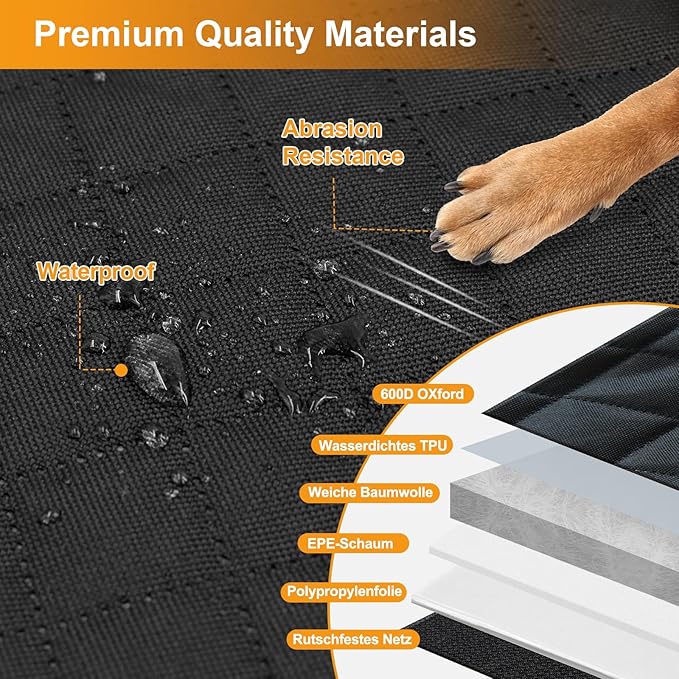 - Large Space: With a sturdy hard bottom, this dog car seat cover for the back seat offers your dog ample space to move around and sleep comfortably, helping to significantly reduce anxiety during car travel.