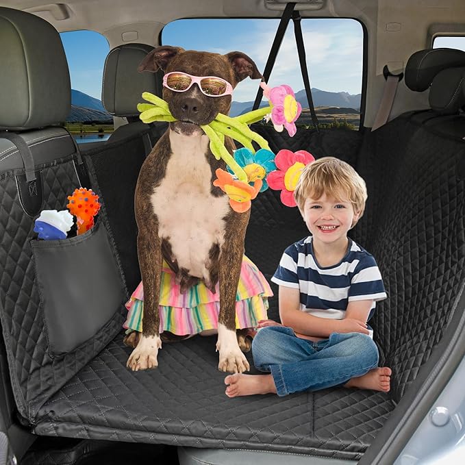 - Visible Mesh Window: This dog back seat cover hard bottom features a visible mesh window that enhances airflow and allows easy interaction with your dog. Additionally, it has two large storage pockets, perfect for holding toys, snacks, and other essentials.