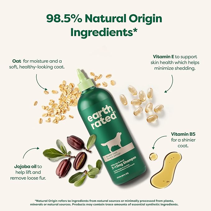 Earth Rated 3-in-1 Deshedding Dog Shampoo and Conditioner, Deodorizing Oatmeal Shampoos for Dogs and Puppies, Great for Smelly Pets, White Tea and Basil Scent, 16 oz