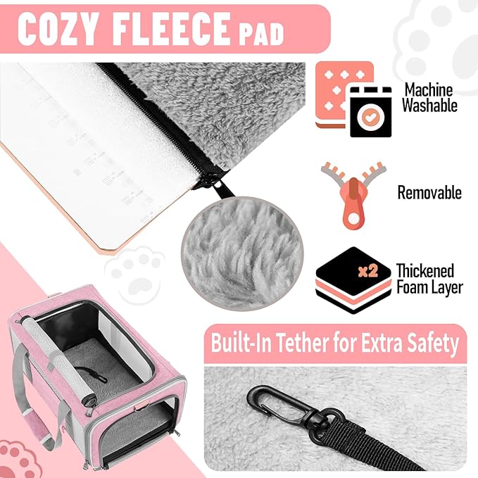 Cat Carrier 20lbs Top Open/Soft Sided Small Pet Dog Travel Carrying Crate/Collapsible Puppy Transport Carry Bag/Sturdy Pet Cages Chihuahuas Mini Dog 10lbs Pink