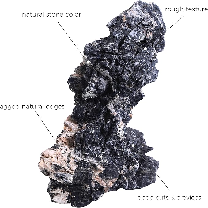 - UNIQUE FORM & FINE TEXTURES: Each seiryu stone features a distinct jagged texture and classic dark gray tone with natural white veining. This combination provides exceptional depth and contrast in aquascapes, inspiring limitless creativity for hobbyists to craft visually dynamic aquarium layouts.
