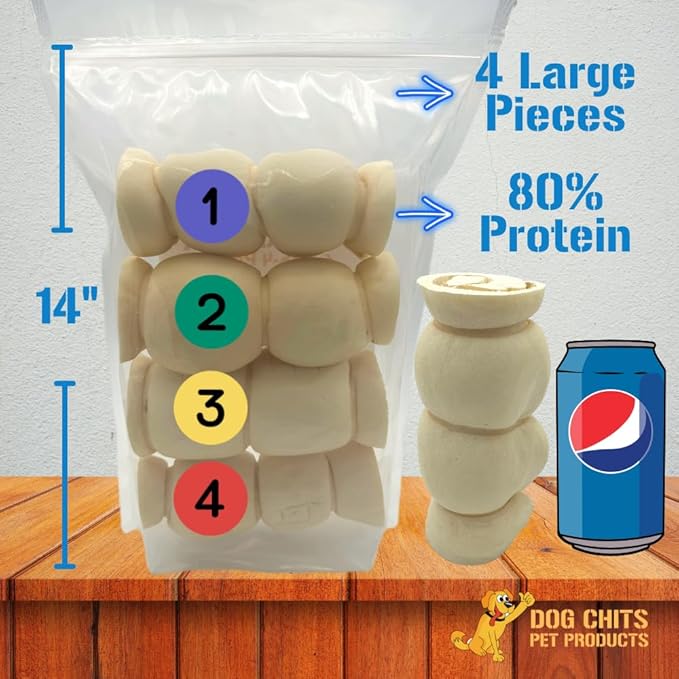 Dog Chits Beef Cheek 6", 4 Pack, Dog and Puppy Chews, Thick, Lasts for Days, 100% Cheek (not Hide), Single Ingredient, All Natural, Fully Digestible