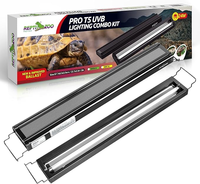 REPTI ZOO UVB Reptile Light, New Version T5 HO UVB Lighting Combo Kit, Reptile Terrarium Hood with 10.0 UVB Tube Bulb, Reptile Light Fixture 24W-22Inch