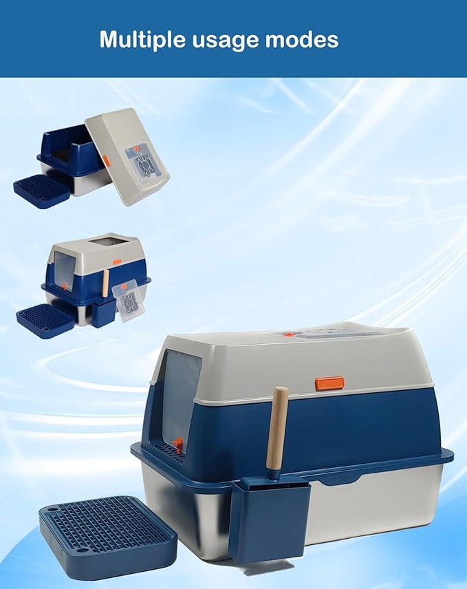 - 【Stylish and Dynamic】 With a deep blue + light gray color scheme and a dynamic shape, this good-looking cat litter box brings more vitality to the home atmosphere, making it the preferred cat litter box for cat owners who love life.