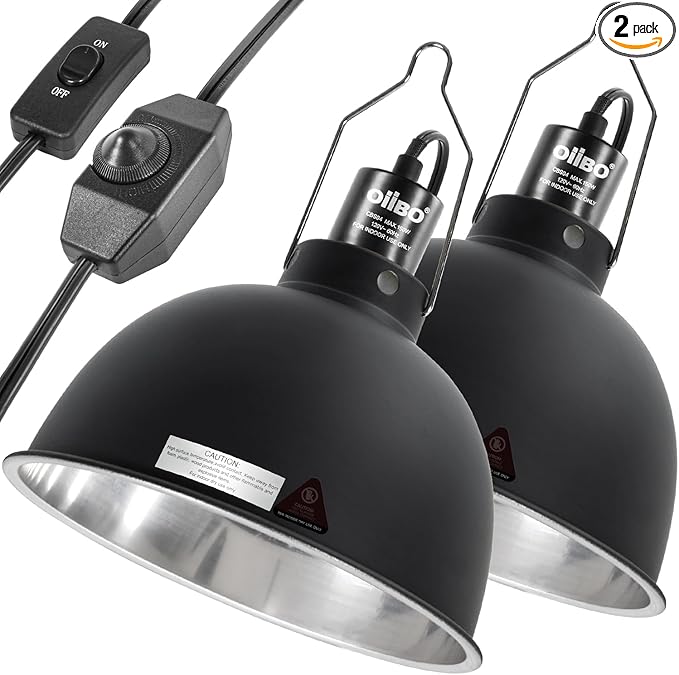 Oiibo 8.5 Inch Reptile Light Fixture with Dimming/Separate Switches, 2 Packs Deep Dome Lamp Cap Reflector Cover, UVB Light Heat Lamp Fixture for Reptile Glass Terrariums, Max 150W Black