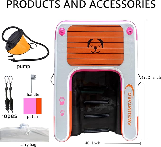 Inflatable Dock, Load-Bearing 200 pounds, Dog pet ramp, Suitable for Swimming Pools, Boat Docks, Lakes, Beach use Water Sports Platform.