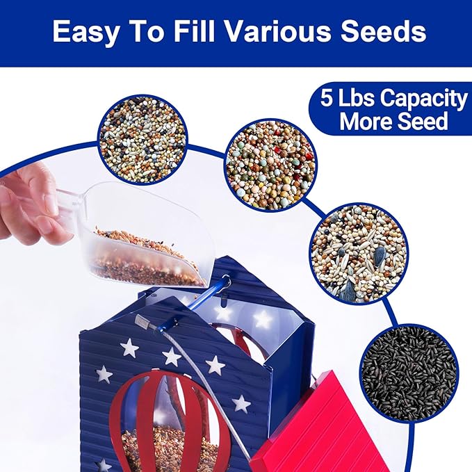 - 5 pounds large capacity seeds birdfeeders, wide open, easy refill and clean, no tools